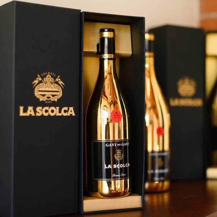 Престиж, най-високо качество, органично производство, подбрано грозде от 60 годишни лозя, семейна традиция, световна слава – всичко това е събрано в една бутилка от Ла Сколка „Черен Етикет“. Златната, юбилейна бутилка е създадена в чест на 100 години от създаването на избата и на целия район на Гави.