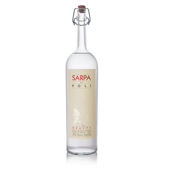 Лежах на дивана у дома с вдигнат крак и разговарях с майка си за проекта, когато в съзнанието ми проблесна име: Сарпа! Много познат термин в района на Басано дел Грапа. Всъщност „Сарпа“ означава гроздови джибри, люспите на гроздето, суровината, от която се прави Грапа. Скочих и казах на майка ми: ще го наречем Сарпа, име, което носи Венецианско сърце и ще може да представлява добрата Грапа по целия свят, със силата на ценностите, които включва в себе си: истинност, простота, автентичност, естественост. Сарпа ди Поли има силен, почти рустикален характер, с приятни тревисти аромати, които напомнят за прясно окосена трева, аромат на вино и червени цветя като здравец, роза и теменужка, които го правят вечна класика.“